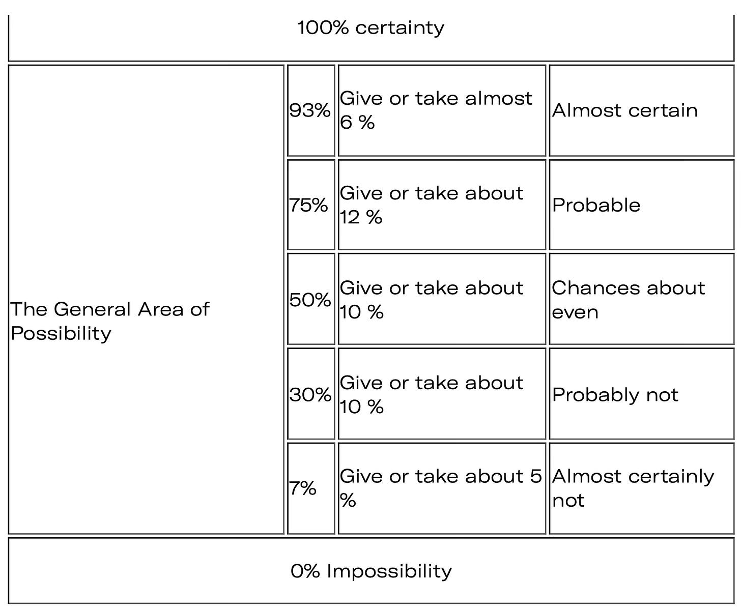 There is another way of expressing certainty and that’s with plain, consistent language. This is, perhaps, most applicable to how the forecasts are described, though each question or poll could offer its own certainty rating without relying on statistics terminology most people will not be that familiar with. The CIA offers some guidance here: