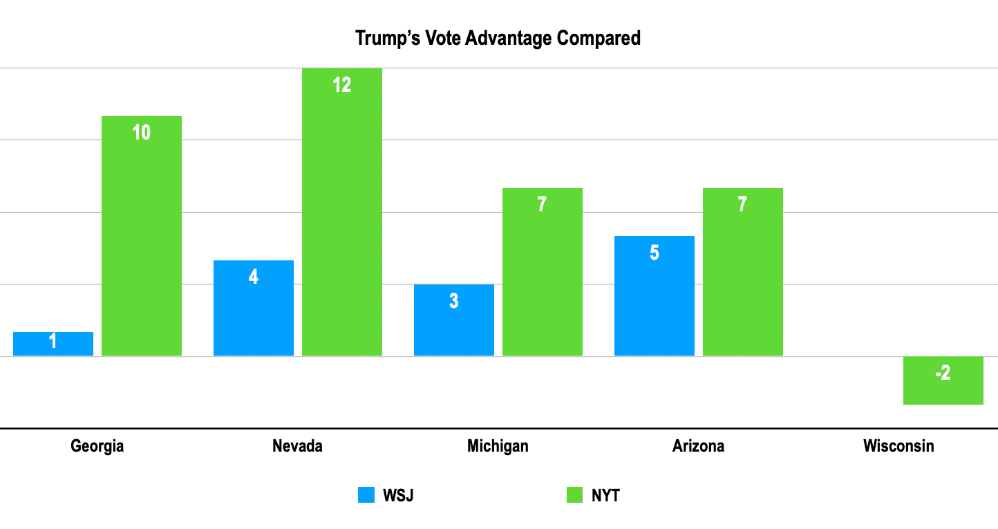 I think if you want to know why people freaked out way more about the NYT poll than the WSJ poll, it's probably because the NYT had some more extreme top line numbers. But both polls tend to be pretty wide of the results in 2020.