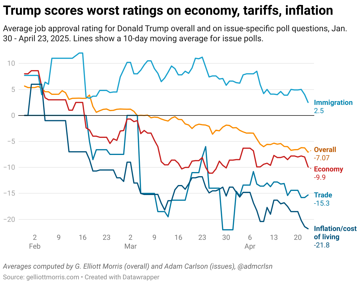 Chart of the week: Trump is losing voters on the economy, G. Elliott Morris, Strength In Numbers, 4/18/25 (Archive)