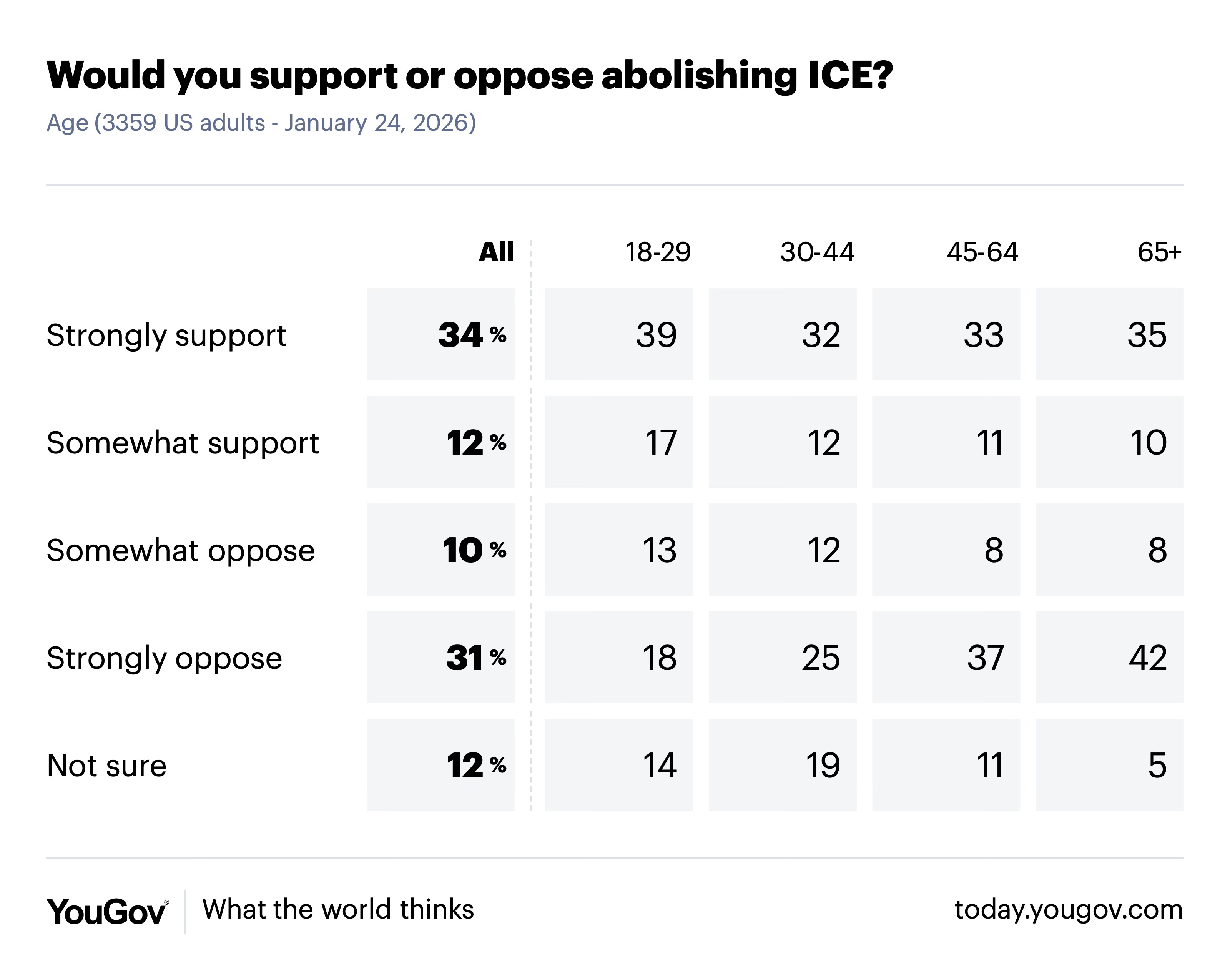57% disapprove of the way ICE is performing its job, with about half strongly disapproving.