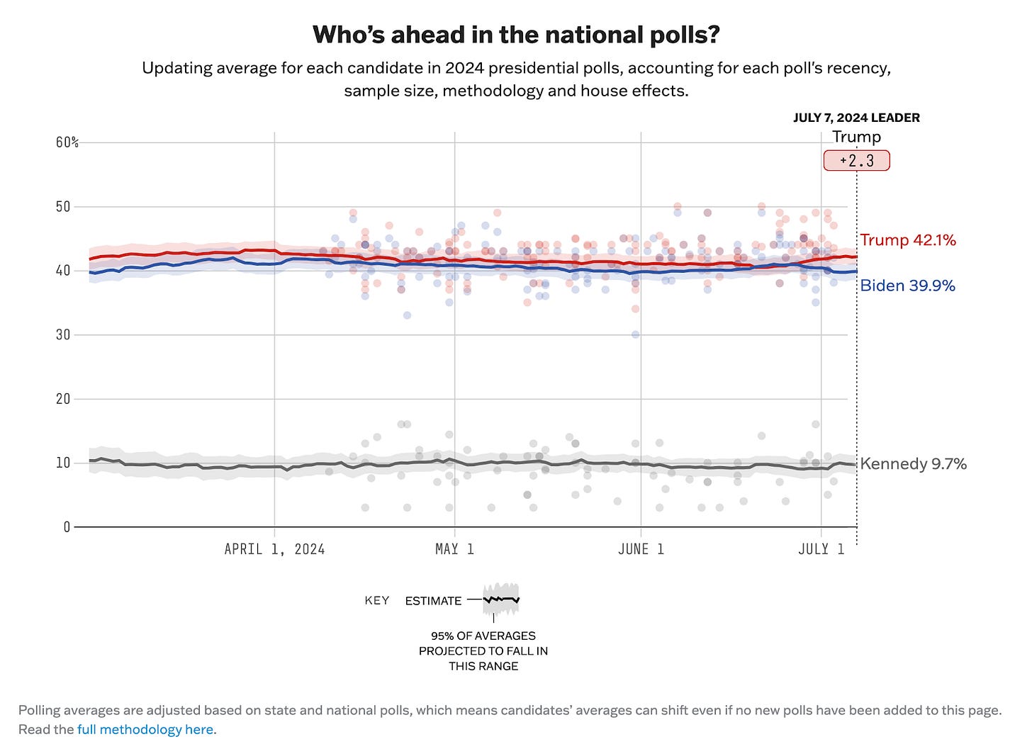 The race is tied. Even “The Debate” hasn’t shifted the averages much. I can’t tell you how weird that is. We talk about our polarized electorate, and how consistently close the last few elections have been, but the 2024 trendline just looks different.