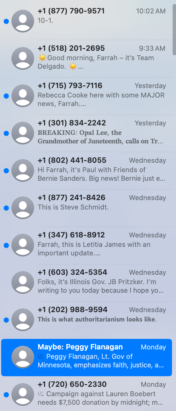 If you were an alien from another planet, and saw these messages, you would be forgiven for thinking, based on the urgency of the messages, and the informal, personal tone, and the request for money, money, money that I was an incredibly important party elite and member of the esteemed donor class.